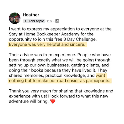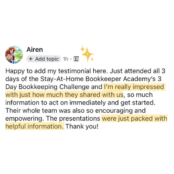 Don't miss this day if you want a proven strategy our students use to find and sign clients as new bookkeepers (without awkward pitching). Learn the common mistakes to avoid and walk away with a roadmap to turn this into a flexible $100-$200/hr business!